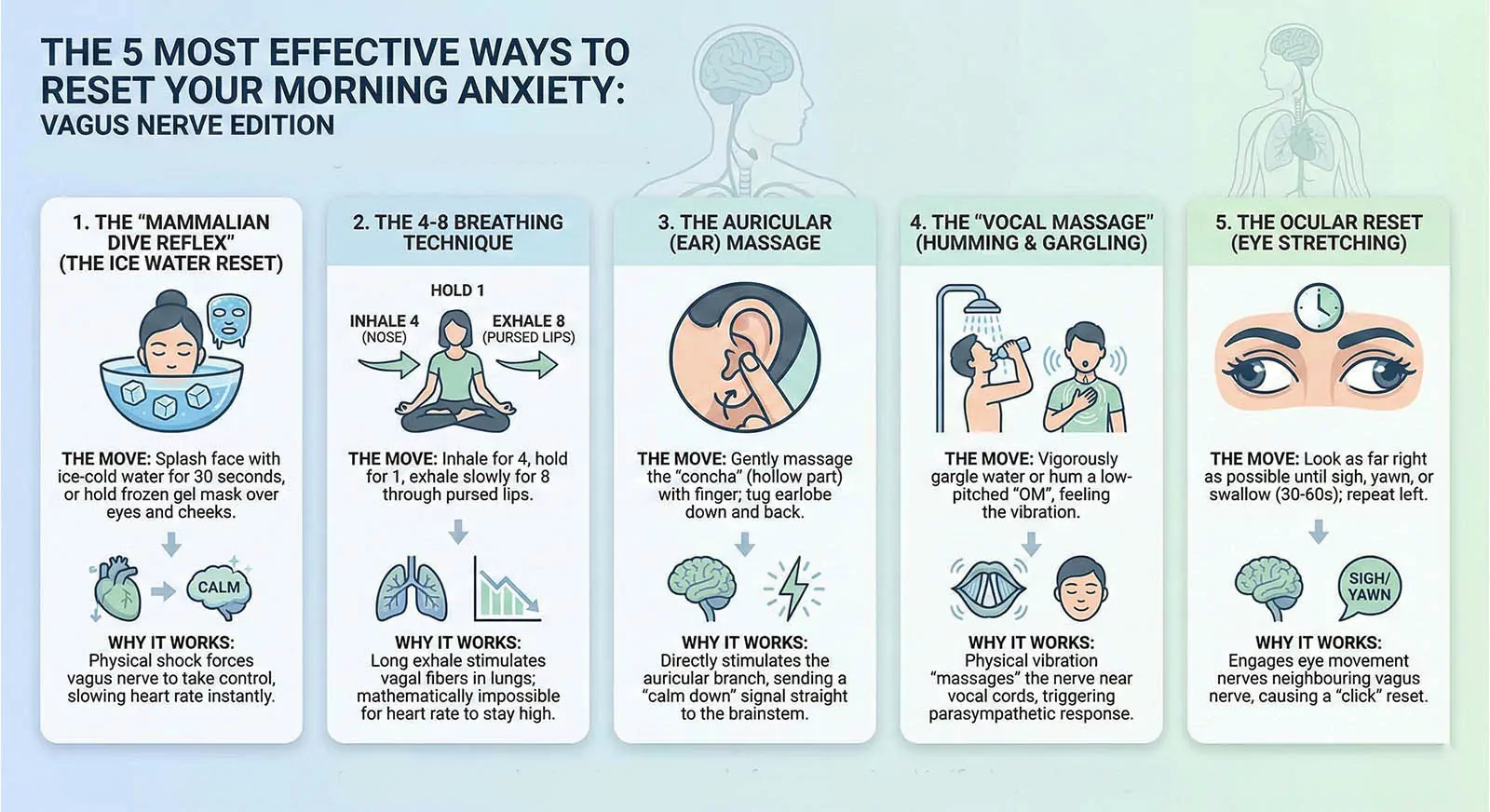 Here is our verified ranking of the best methods for a vagus nerve reset for morning anxiety: